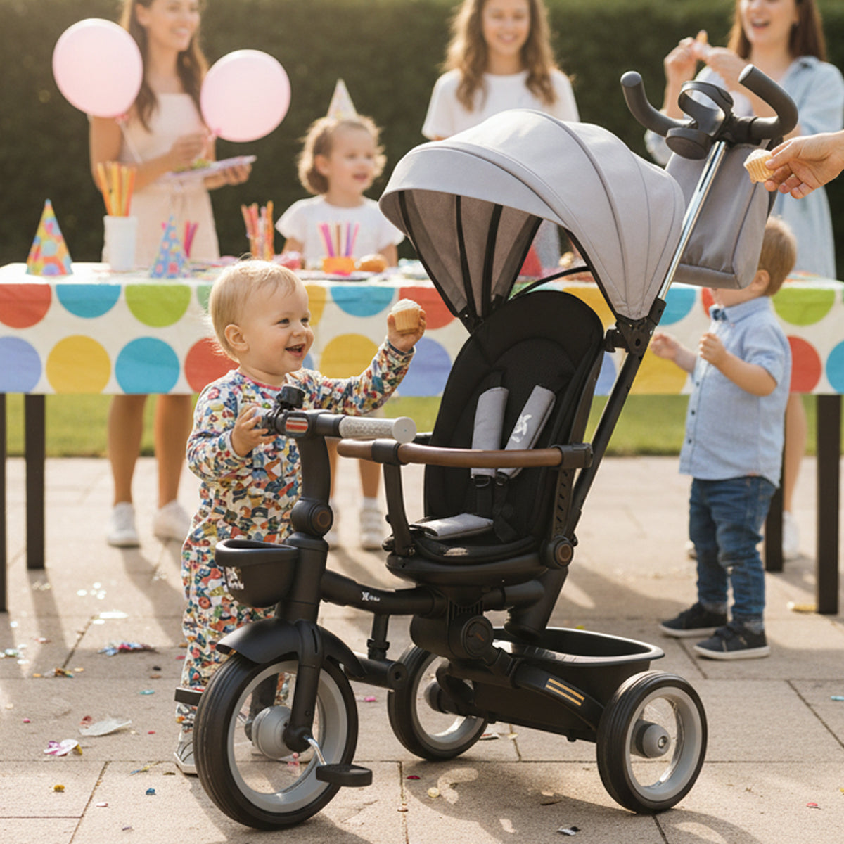 Triciclo Evolutivo Bebé SAMI Plegable con asiento reclinable y giratorio 360 bicicleta 2 años – carrito bebe, correpasillos juguete, 1-5 años o 25kg – Luz, capota extensible y mango parental